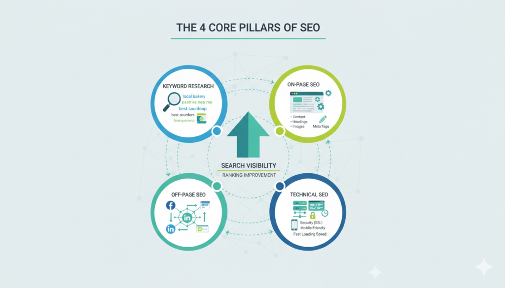 Search engine visibility ke liye website zaroori hai. Platform like Google users ko best relevant results dikhata hai β aur agar aapki website optimized nahi hai, to aap visible nahi honge.